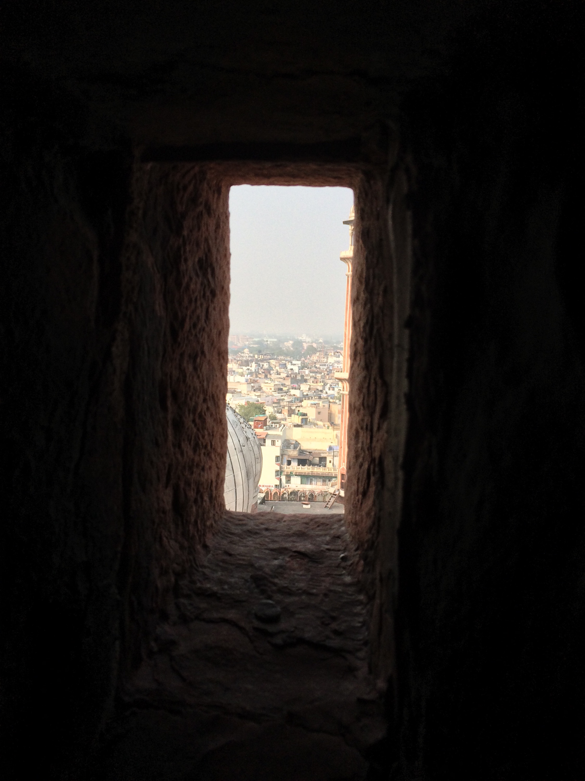 We walked about the mosque enjoying its architecture and its general peace after the crowds of the market. We paid the hundred rupees to ascend one of the spires for a view of the city. Dad found a corner to relax in and watched our shoes as we made the climb. Climbing and heights have got to be two of dad’s least favorite things.