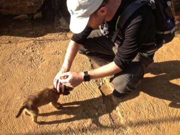 I stepped out of the car in order to persuade the little thing to move along. It ignored me as easily as it had the car. In the end I was forced to pick the little fellow up and move him to the side of the road. I was hesitant. Would he bite? Was he sick or injured? Still, I lifted him out of the way so we could continue our journey.