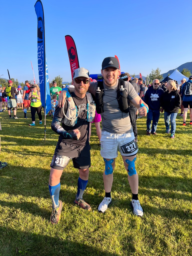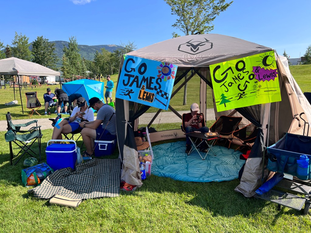 Before too long I left the trail and gained a dirt road, that turned into the paved sidewalks of Grande Cache. I struggled not to hyper ventilate and I fought tears with shouts of joy. I sprinted, as best I could, through the finish line and into Lisa’s arms. Truly this is heaven. I’d find Jaron asleep in the aid tent. Lewis and his wife, Chelsey, along with his friends (and now ours) Austin and Sam were there too. I was presented with a finishers coin and shook the race directors hands. They treat every finisher as a winner. I love the work they put into this.