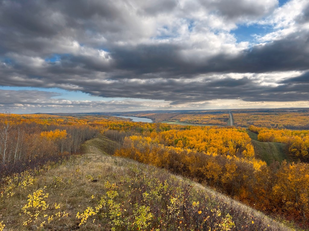 “Don’t forget to look up every now and then and check out the view.” Adam’s advice was well timed. I had just crested the lip of a gnarly hill. I took my eyes off my feet and twisted for a look at what I just climbed. A rippling tide of yellow leaves rolled through a shallow valley. The sun was momentarily unveiled from behind sailing clouds. The lake in the valley was a brilliant golden mirror. It took away what little breath I had left. The sight nearly rooted me to the ground, transfixed. No time to stop! I was nearly 50 kilometres in to this 100 kilometre race.